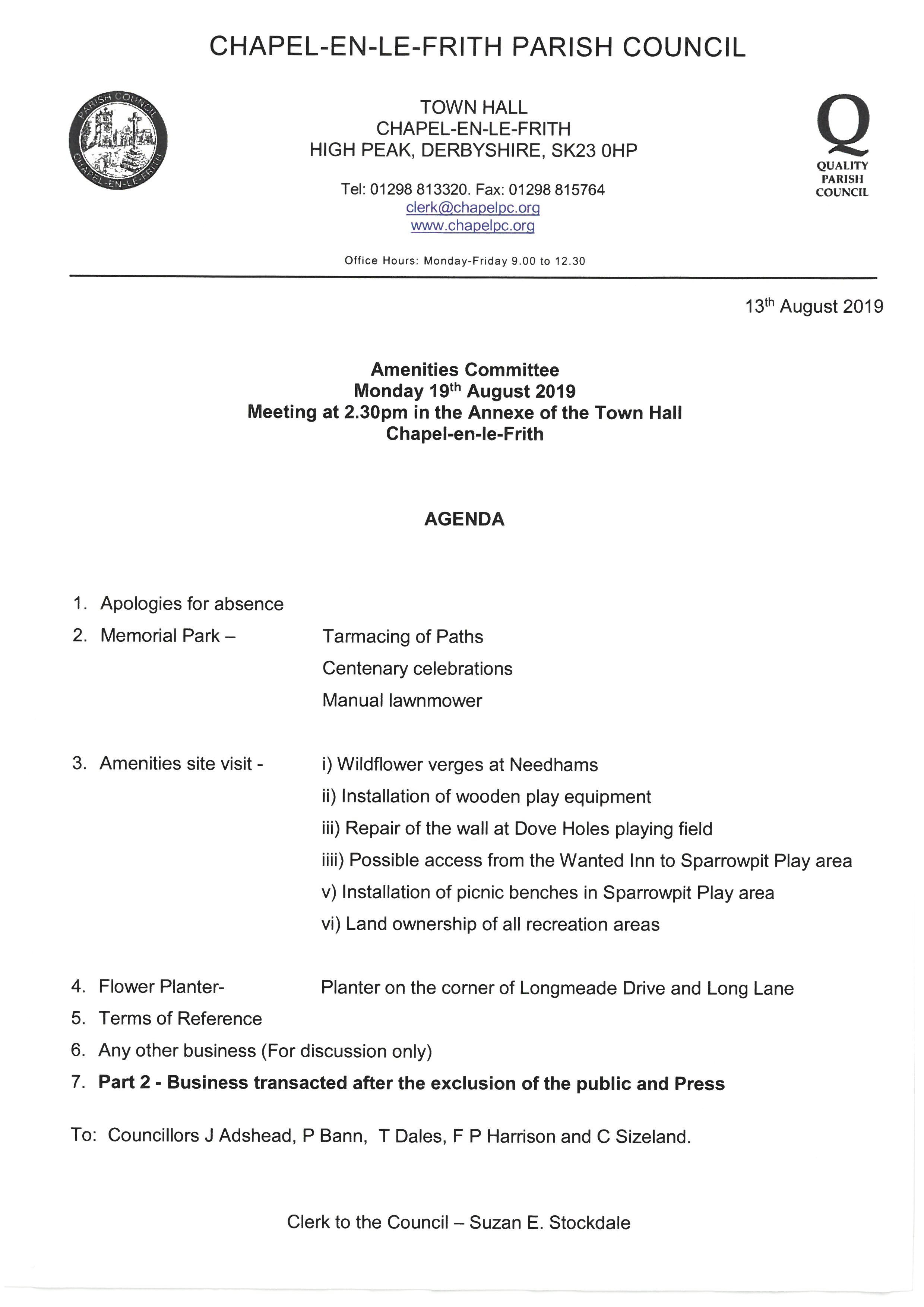 | Amenities Committee Agenda | 2019-08-13 |