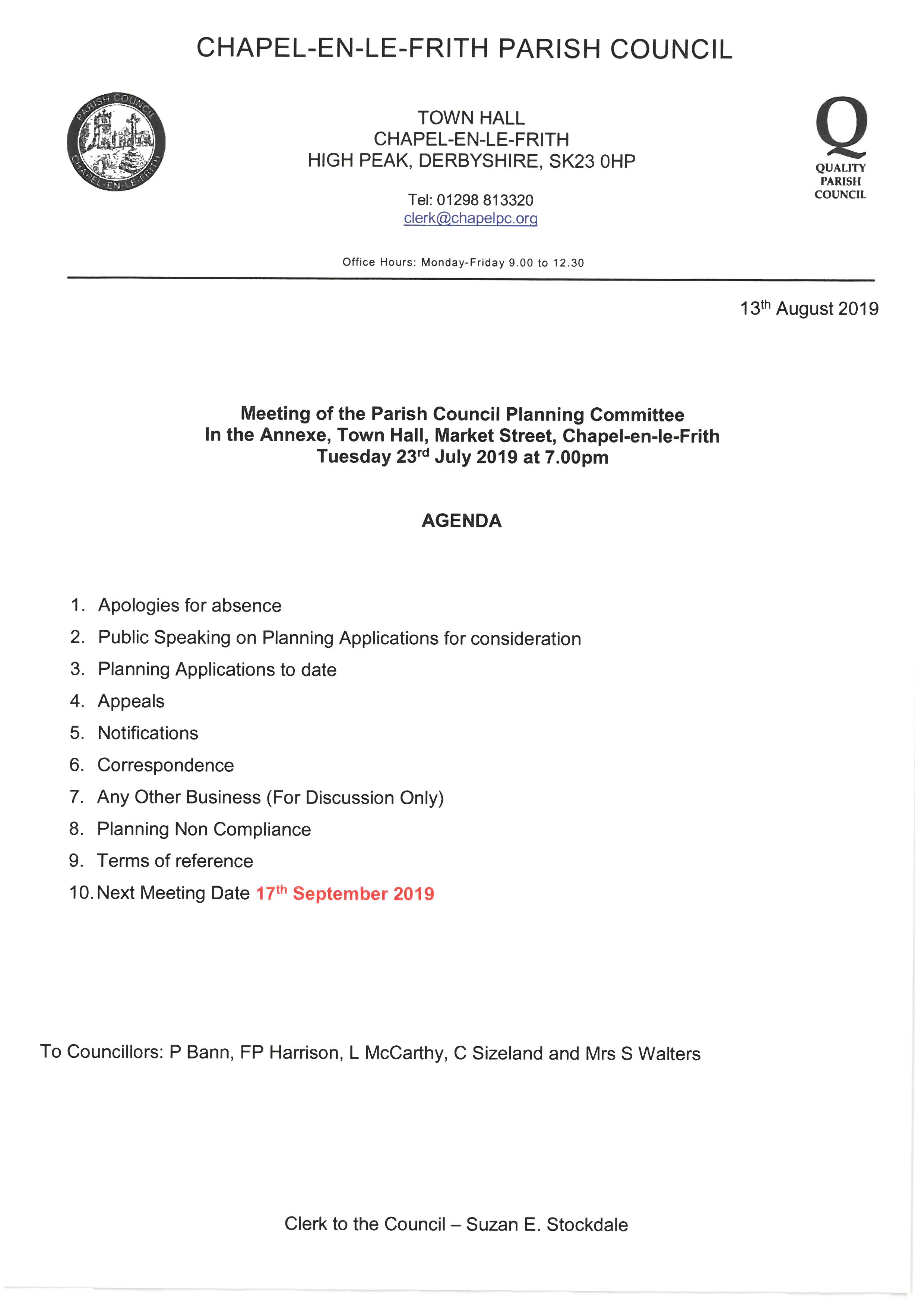 | Planning Committee Agenda 13.8.19 | 2019-08-14 |