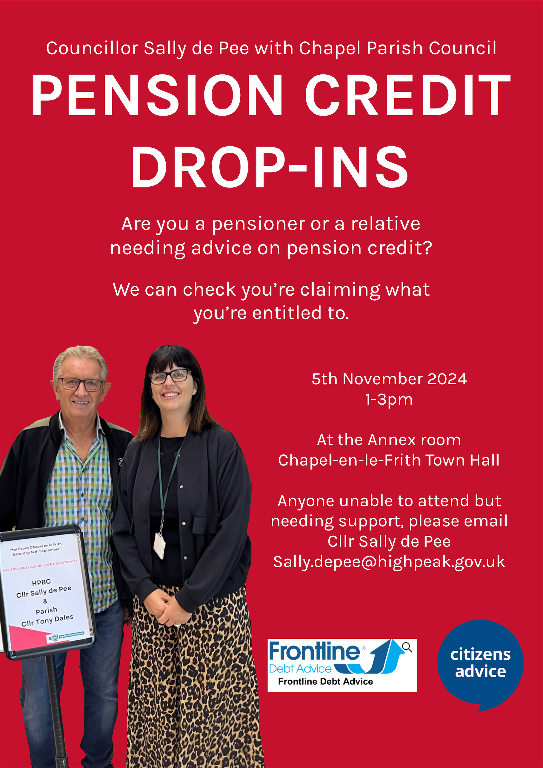 A pension credit drop-in will be held at the Town Hall on Tuesday 5th November 2024 1-3pm